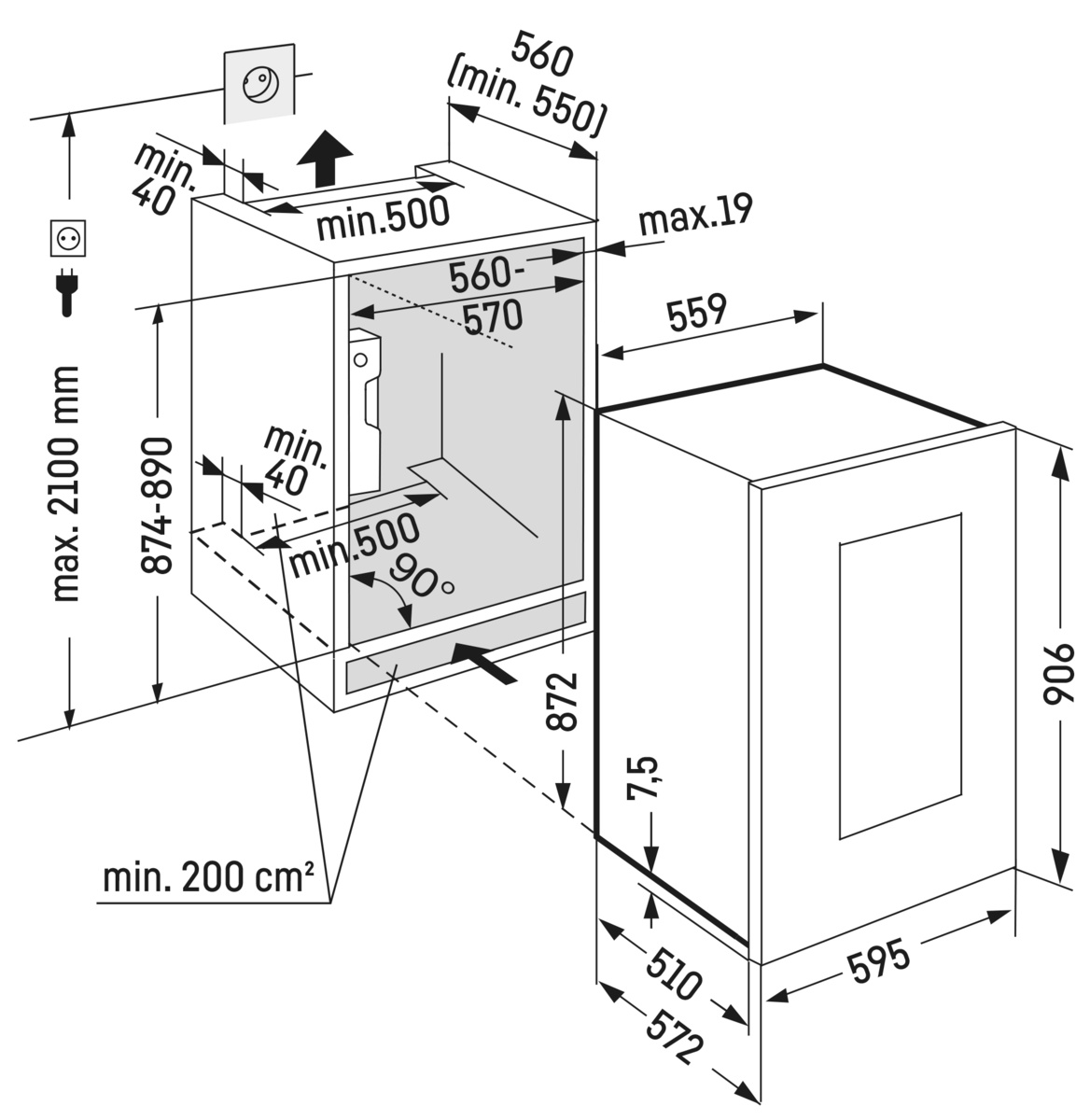 Высота ниши для встраивания, мм