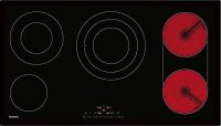 1  зона нагрева SuperQuick диаметром 14,5  см (1050  Вт) с  зоной расширения до  21  см (2200  Вт) и  до 27  см (3080  Вт).