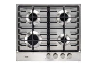 Газовая варочная панель, на нержавеющей стали, ширина 60см, чугунные держатели, газконтроль и автоматический автоподжиг, 4 конфорки.