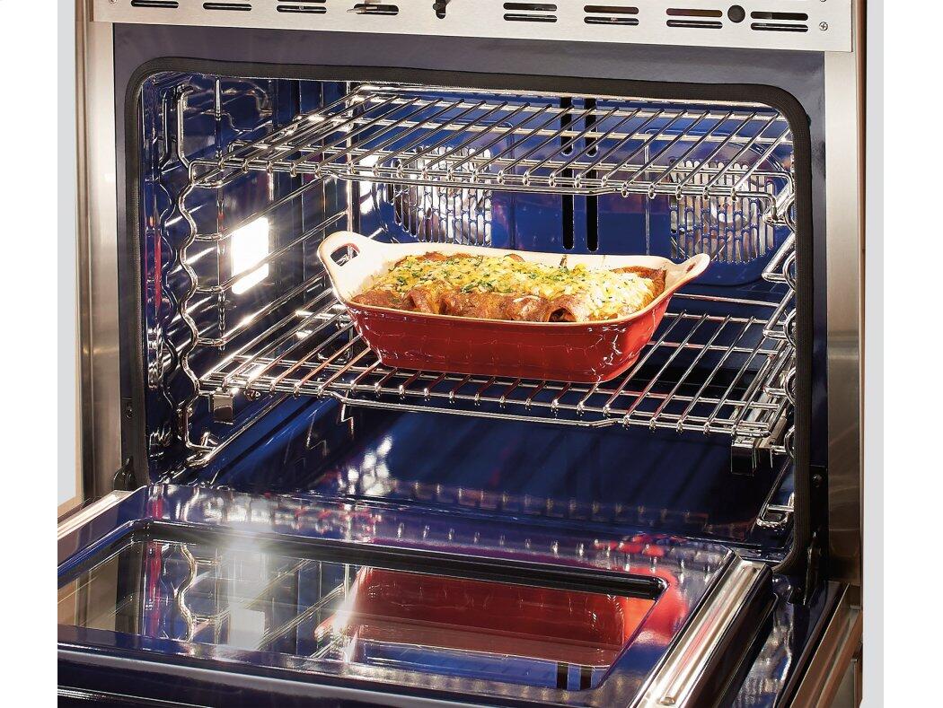 Цветной сенсорный экран интуитивно понятен и удобен. По окончании работы он незаметно скрывается на лицевой панели. Переключатели управления со светодиодной подсветкой загораются при использовании, указывая, какие горелки активны. Духовка имеет функции самоочистки (пиролиза), отложенного старта, готовки по расписанию и опцию «Шаббат».  Внутри они покрыты синим фарфором, устойчивым к температурному и механическому воздействиям, массивные дверцы легко и плавно открываются благодаря гидравлическому механизму. Благодаря выверенному дизайну, кухонный блок выглядит презентабельно и стильно.
