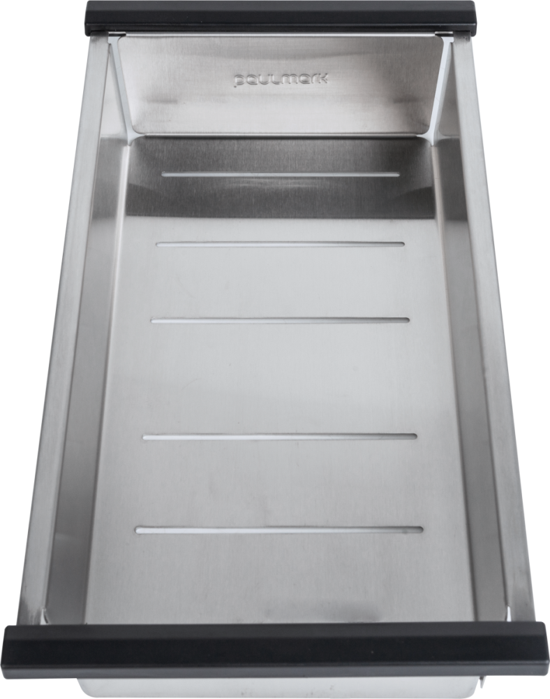 Коландеры Paulmark изготовлены из нержавеющей стали ASIS 304, устойчивы к перепадам температур и к нагрузке. Используются для мытья и размораживания продуктов. Устанавливаются на бортики мойки и в специальные ступеньки моек серии PRO. Размер отверстий в донной части не позволит выпасть даже мелким ягодам и в то же время не препятствует свободному стоку воды. Глубина коландера - 6 см.