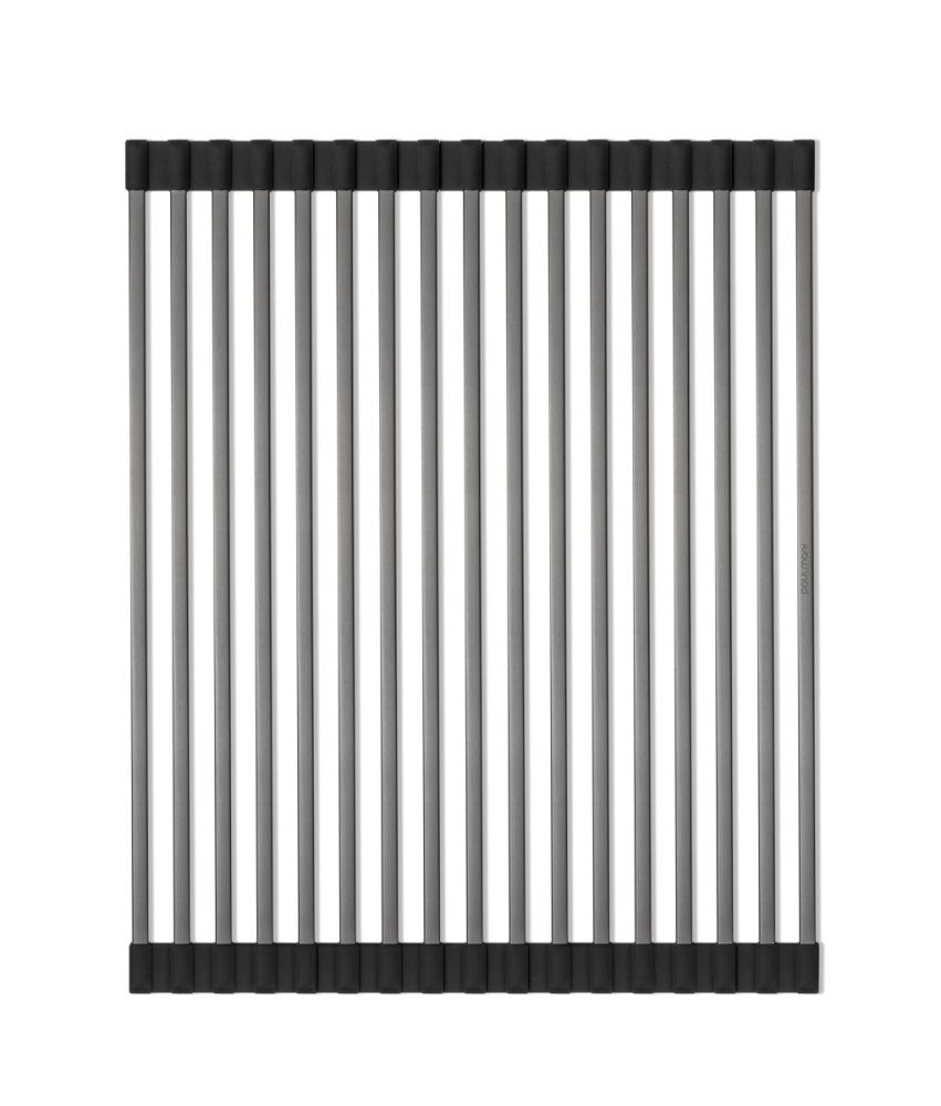 Он может быть использован в качестве подставки для горячей посуды, сушилка для овощей и фруктов или коврик для разморозки продуктов. Благодаря двусторонним силиконовым наконечникам, ролл-мат защищает поверхность и может быть размещен на столешнице, крыле мойки или в специальных направляющих чаши кухонной мойки.