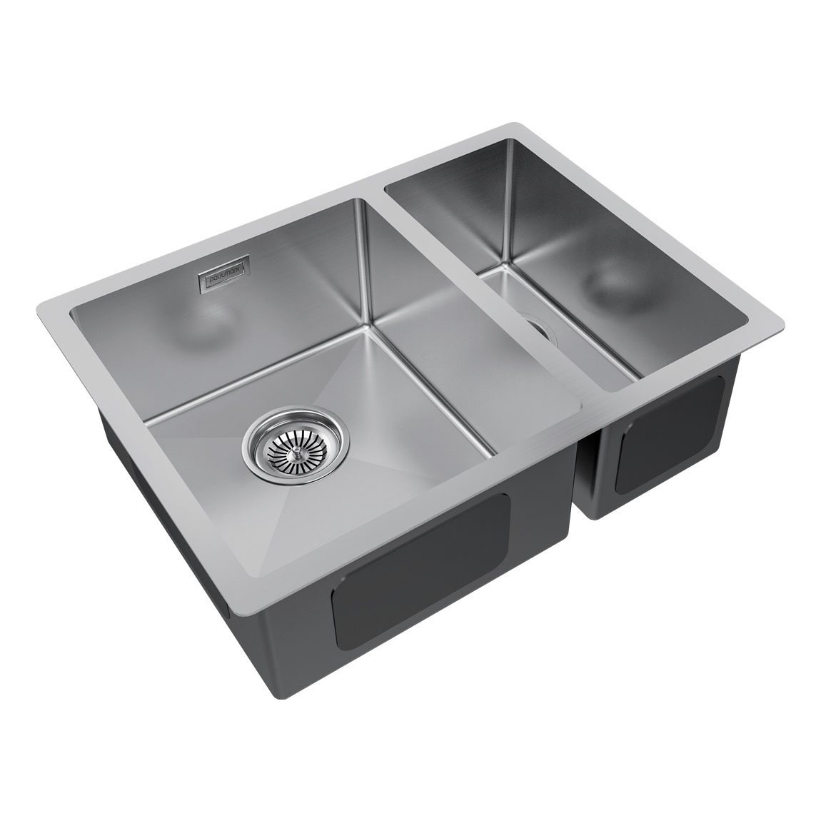 Габариты мойки составляют 590х440 мм, а дополнительная чаша шириной 180 мм расширяет функционал. Возможен подстольный, накладной монтаж или монтаж вровень со столешницей.