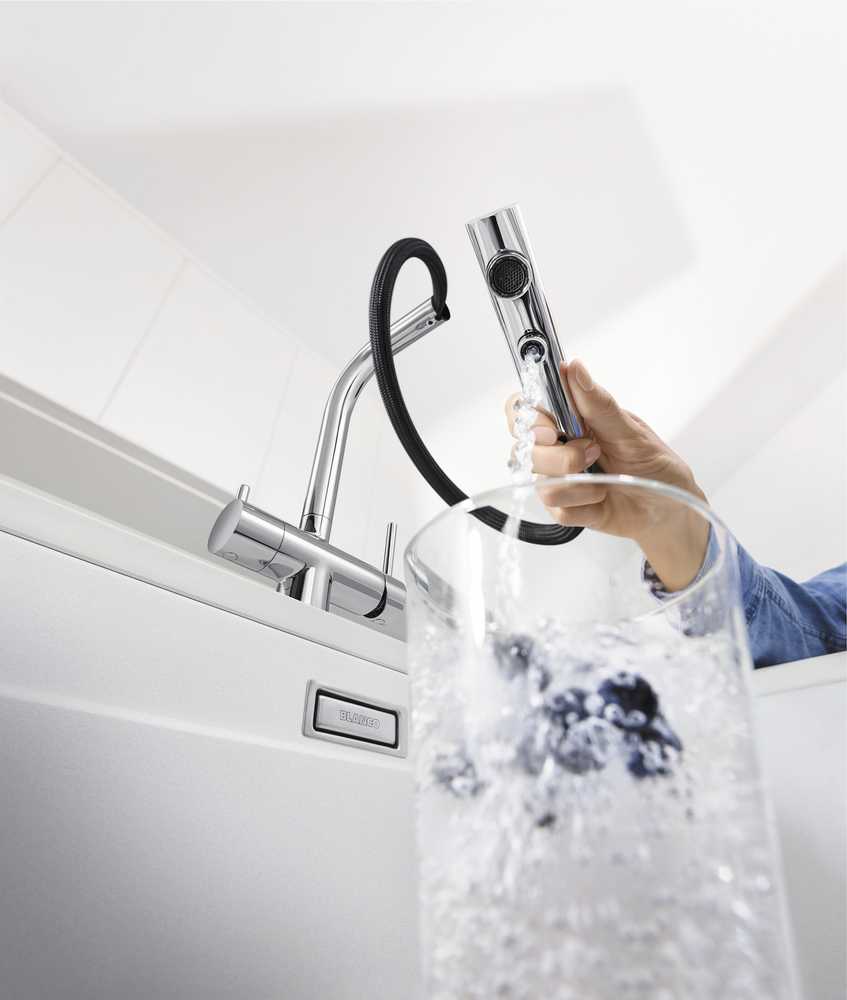 Смеситель с подключением фильтра FONTAS-S II 526158 от Blanco воплощает философию бескомпромиссного качества, инновационного дизайна и функциональности, превращая самое активное место на кухне в продуманный, эргономичный и эстетичный центр для приготовления пищи.