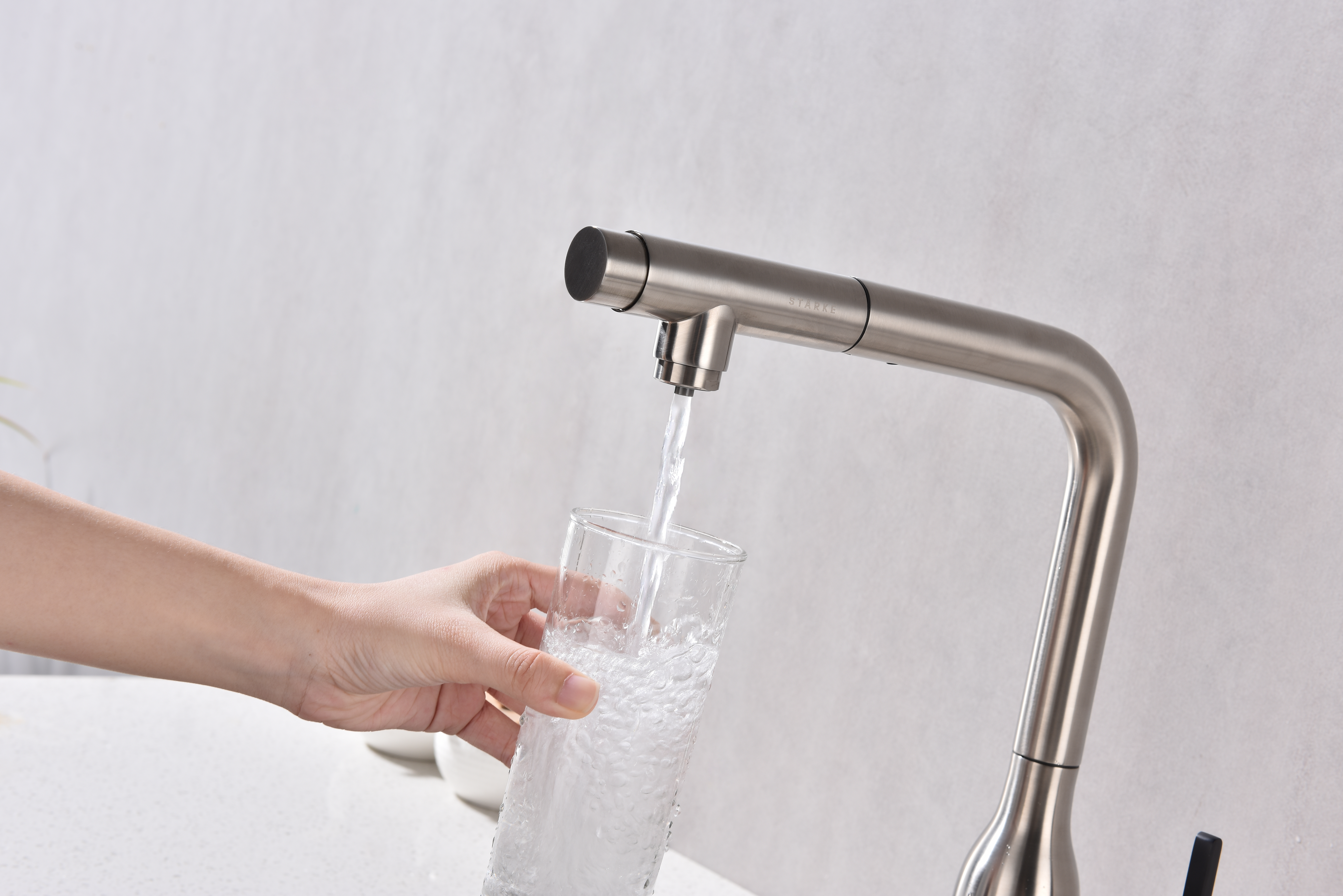 Смеситель VIPER имеет отдельный канал для питьевой воды. Переключение режимов осуществляется с помощью удобной и эргономично расположенной кнопки. Благодаря такому функционалу, потоки воды не смешиваются, а переключение осуществляется максимально комфортно.