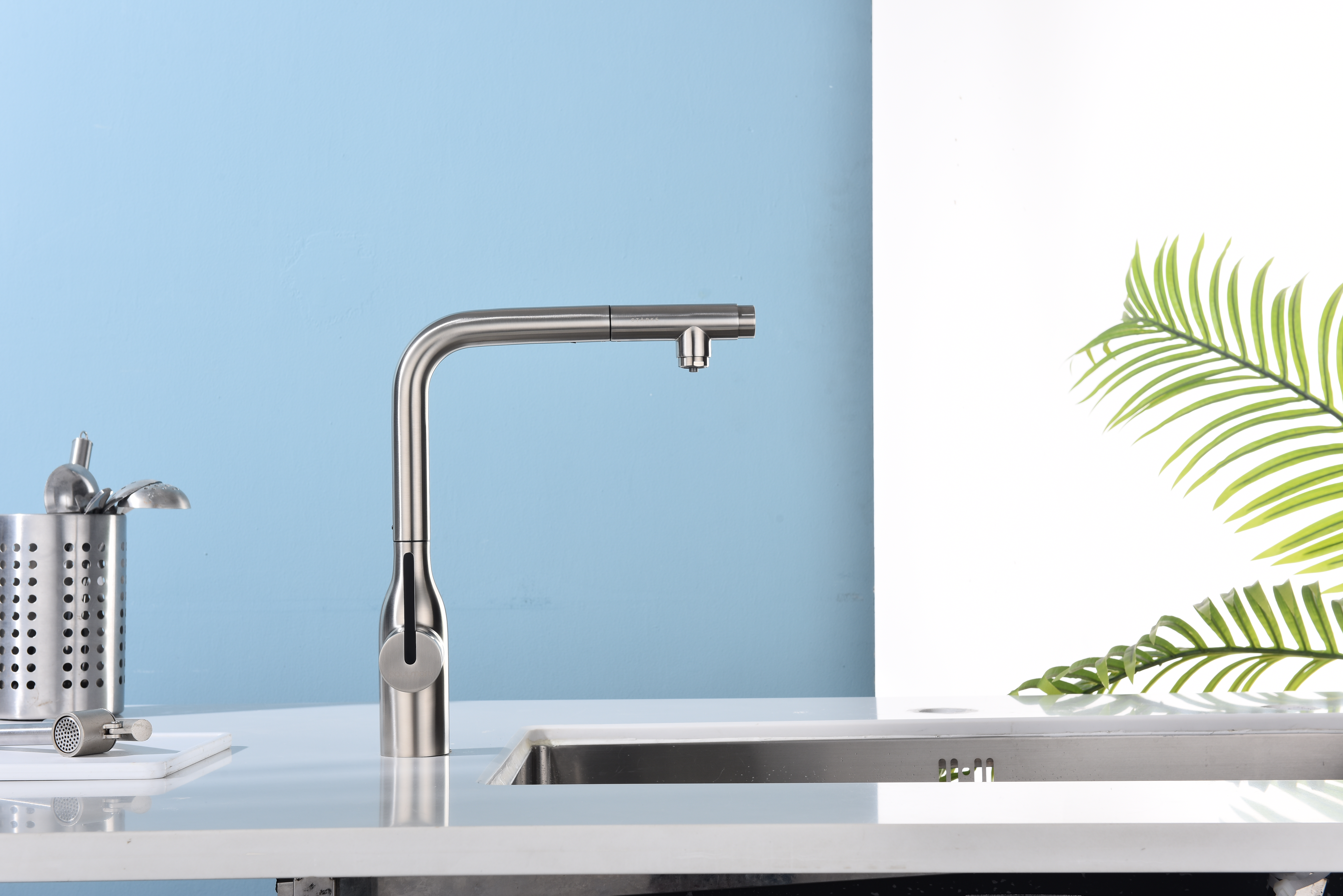 Высокий Г-образный излив с функцией вращения на 360 градусов обеспечивает удобство использования. Выдвижная часть излива способна обеспечить максимально комфортную эксплуатацию и экономный расход воды.